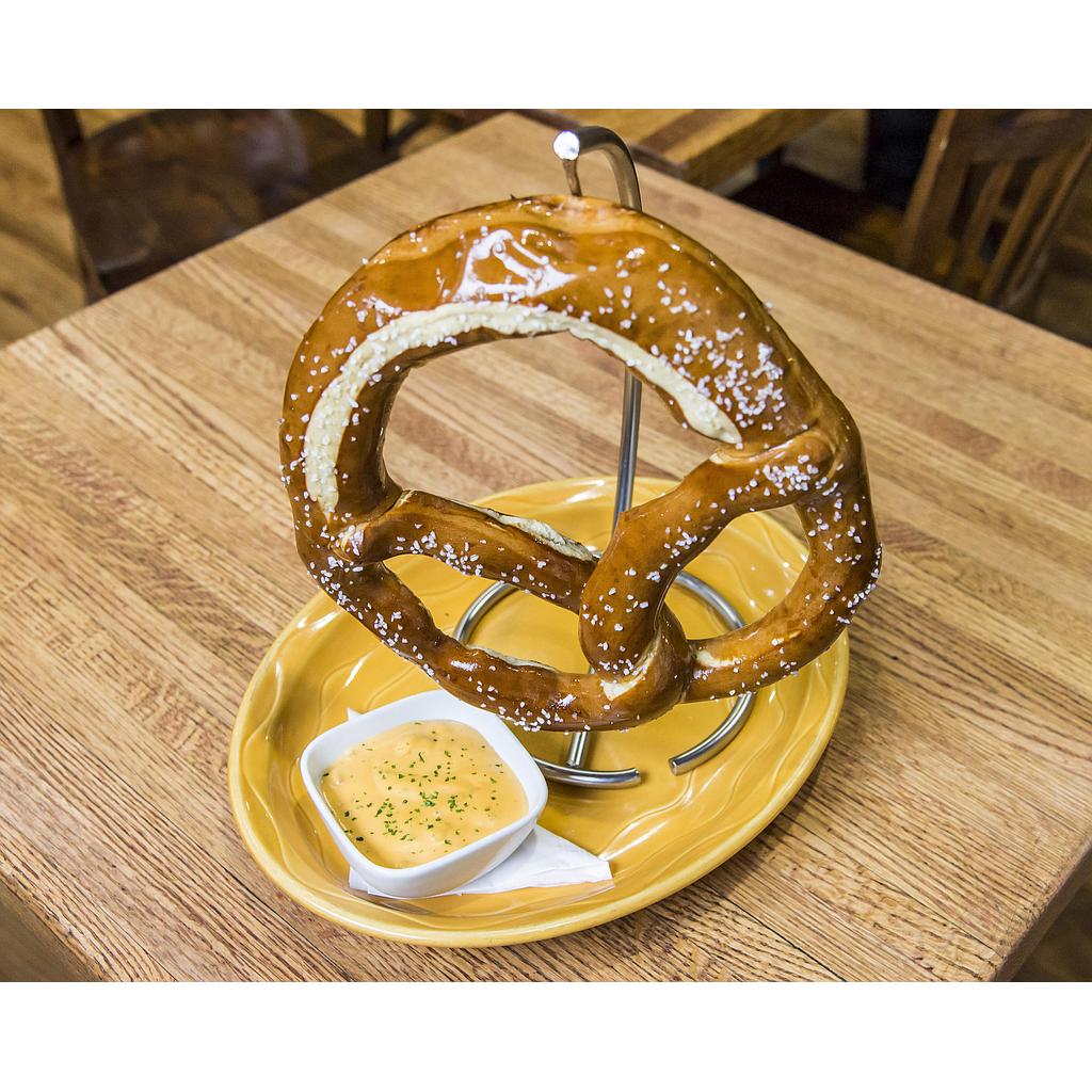 Old-World Bavarian style soft pretzel, smothered in our homemade Beer Cheese, and Ball-Park Mustard on the side