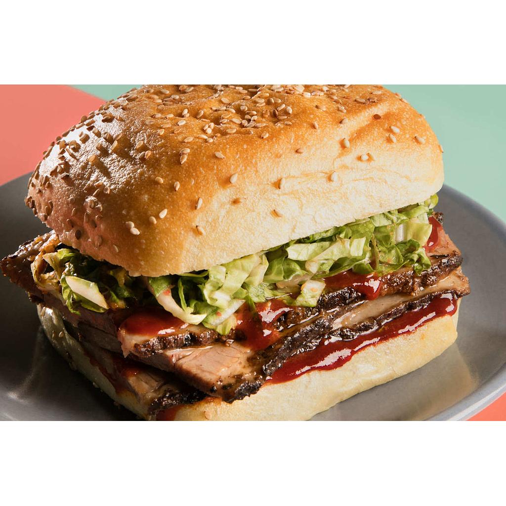 Slow-Smoked Brisket, Cheddar, Onion Straw, BBQ Sauce